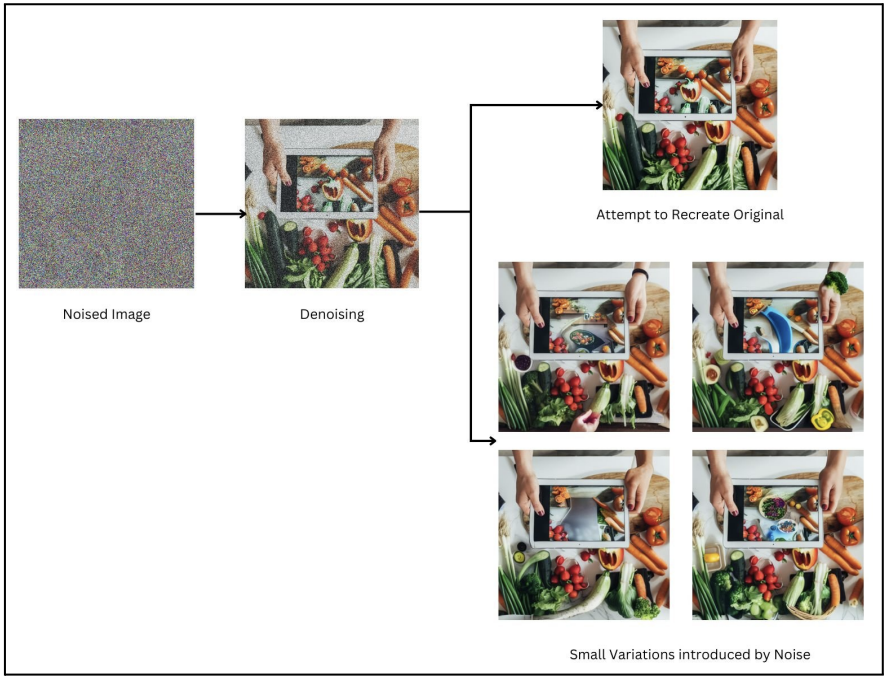 Cette étape consiste à partir d’une représentation z0 de la vidéo et d’y ajouter du bruit pour obtenir une représentation altérée zt, afin d’apprendre au modèle à débruiter des vidéos. Ci-dessous un exemple illustratif.