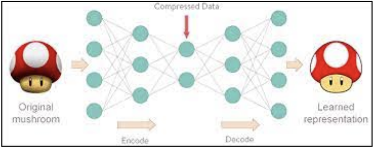L’autoencodage : Un auto-encodeur est un réseau de neurones artificiels utilisé pour l'apprentissage non supervisé de caractéristiques discriminantes. Pour le cas du traitement d’images, les caractéristiques discriminantes sont les caractéristiques principales d’une image qui la différencie de toutes les autres. L'objectif d'un auto-encodeur est d'apprendre une représentation (encodage) d'un ensemble de données (ici une vidéo) dans le but de réduire la dimension de cet ensemble (en gros c’est ce que fait un CRM aussi, réduire les dimensions caractéristiques d’un client à quelques données clés pour simplifier le traitement). L’image ci-dessous illustre un encodage et un decodage, la représentation propre au réseau de neurones se trouve au milieu, et est a priori incompréhensible pour un humain.